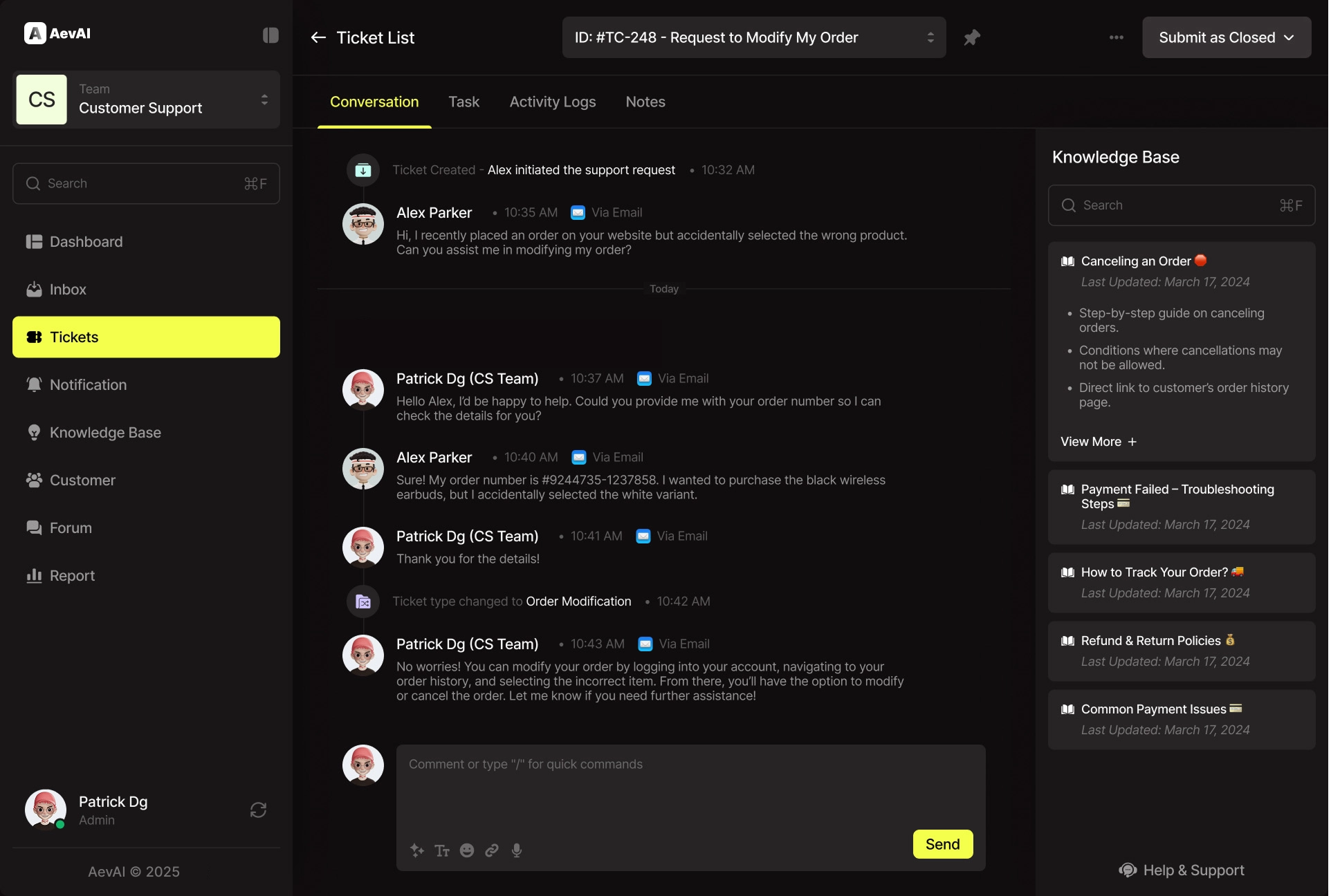Гибкая архитектура позволяет адаптировать AevAI под вашу нишу, тональность бренда и уникальные сценарии — от онлайн-торговли до сложных B2B процессов.